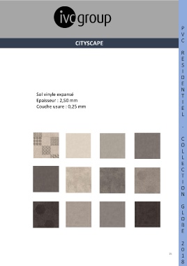 P V C CITYSCAPE R E S I D E N Sol vinyle expansé T Epaisseur : 2,50 mm I Couche usure : 0,25 mm E L - C O L L E C T I O N G L O B E 2 0 15 1 8