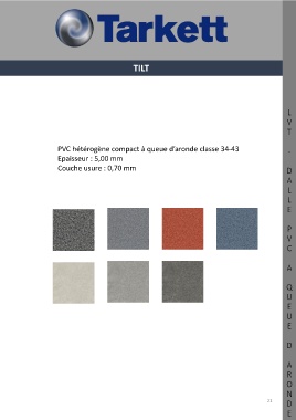TILT L V T PVC hétérogène compact à queue d’aronde classe 34-43 - Epaisseur : 5,00 mm Couche usure : 0,70 mm D A L L E P V C A Q U E U E D A R O N 21 D E