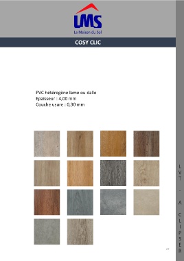 COSY CLIC PVC hétérogène lame ou dalle Epaisseur : 4,00 mm Couche usure : 0,30 mm L V T - A C L I P S E 27 R
