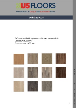 COREtec PLUS PVC compact hétérogène modulaire en lame et dalle Epaisseur : 8,00 mm Couche usure : 0,55 mm L V T - A C L I P S E 31 R