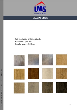 CASUAL CLICK PVC modulaire en lame et dalle Epaisseur : 4,50 mm Couche usure : 0,30 mm L V T - A C L I P S E R 32