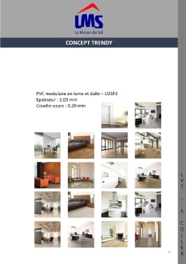 CONCEPT TRENDY PVC modulaire en lame et dalle – U2SP2 Epaisseur : 2,00 mm Couche usure : 0,30 mm L V T - A C O L L E 33 R