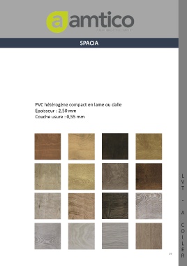 SPACIA PVC hétérogène compact en lame ou dalle Epaisseur : 2,50 mm Couche usure : 0,55 mm L V T - A C O L L E 39 R