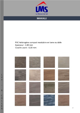 MAKALU PVC hétérogène compact modulaire en lame ou dalle Epaisseur : 2,00 mm Couche usure : 0,30 mm L V T - A C O L L E R 40