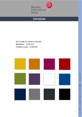 EXPOSIUM Sol vinyle sur envers mousse Epaisseur : 2,00 mm Couche usure : 0,20 mm P V C R E S I D E N T I E 9 L
