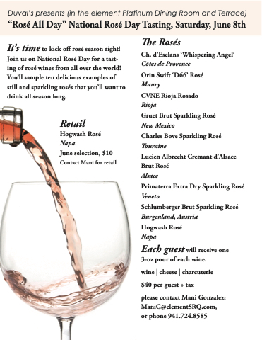 “Rosé All Day” National Rosé Day Tasting, Saturday, June 8th