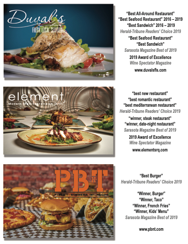 “Best All-Around Restaurant” “Best Seafood Restaurant” 2016 – 2019 “Best Sandwich” 2016 – 2019 Herald-Tribune Readers’ Choice 2019
