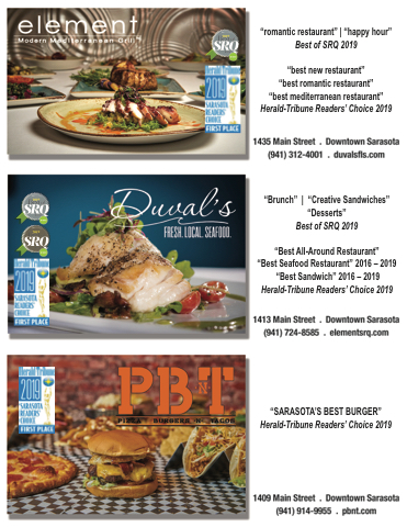 “Best All-Around Restaurant” “Best Seafood Restaurant” 2016 – 2019 “Best Sandwich” 2016 – 2019 Herald-Tribune Readers’ Choice 2019