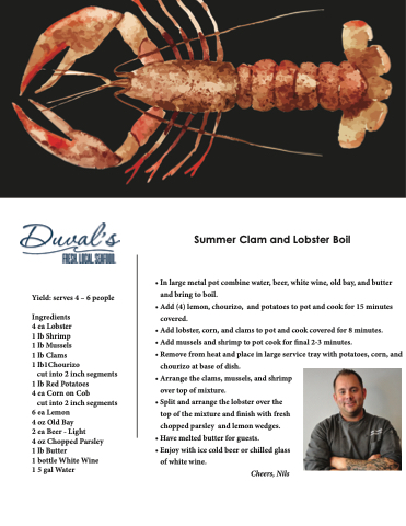 • Add lobster, corn, and clams to pot and cook covered for 8 minutes.