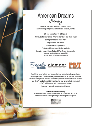 50 Central Avenue, Suite 930 | Sarasota, FL 34236 | 941.374.7110 Melina Economos, Catering Manager | Catering@ADRGsrq.com