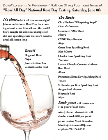 “Rosé All Day” National Rosé Day Tasting, Saturday, June 8th