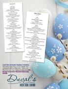 Enjoy Holiday Family Dining at its best at Duval’s. Chef ’s special Brunch will be served from 10 am – 2:30 pm, and Dinner from 4 pm – 9 pm. Celebrate the holiday with us! View the menus on our web site. Please reserve today to assure your table.