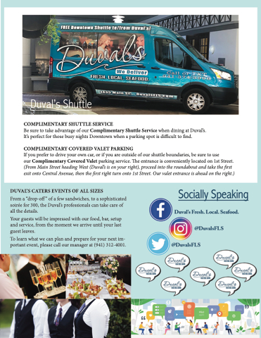 Be sure to take advantage of our Complimentary Shuttle Service when dining at Duval’s. It’s perfect for those busy nights Downtown when a parking spot is difficult to find.