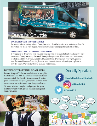 Be sure to take advantage of our Complimentary Shuttle Service when dining at Duval’s. It’s perfect for those busy nights Downtown when a parking spot is difficult to find.