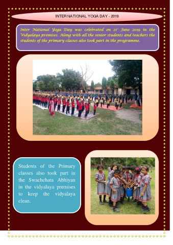 Inter National Yoga Day was celebrated on 21 June 2019 in the