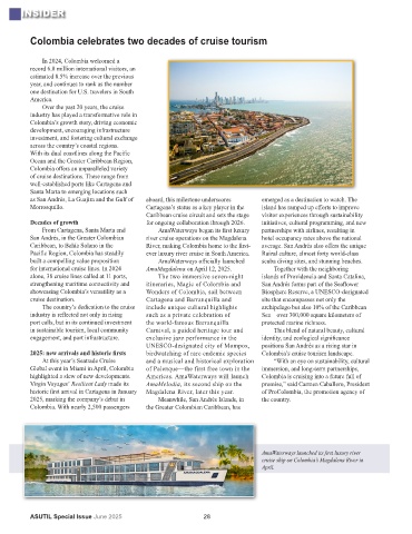 historic first arrival in Cartagena in January Magdalena River, later this year. of ProColombia, the promotion agency of