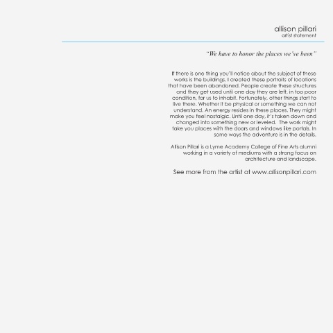 Allison Pillari is a Lyme Academy College of Fine Arts alumni