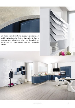 Un design clair et moderne joue sur les accents. Ici en bleu atlantique. Le climber blanc ultra-brillant à entraînement électrique allie fonctionnalité et esthétique. Les lignes courbes viennent parfaire la cuisine. cuisine-clic.com 42