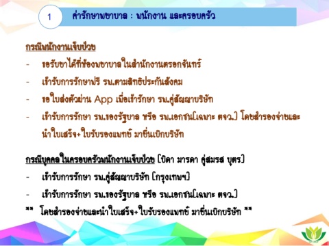 - เข้ารับการรักษาฟรี รพ.ตามสิทธิประกันสังคม