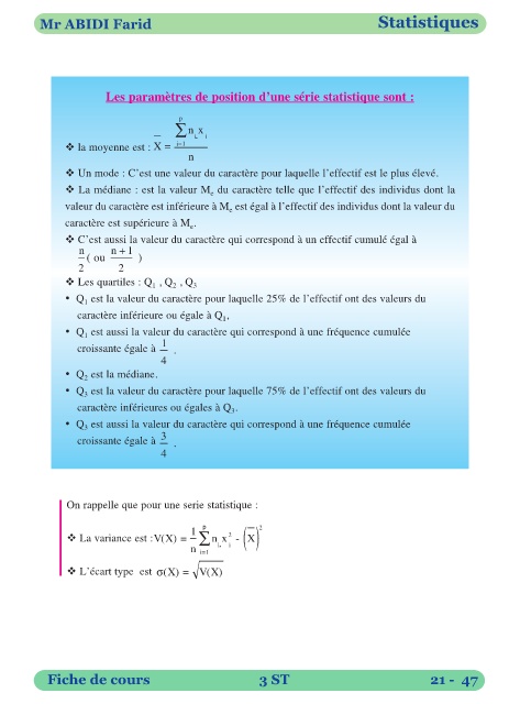 La médiane : est la valeur M du caractère telle que l’effectif des individus dont la