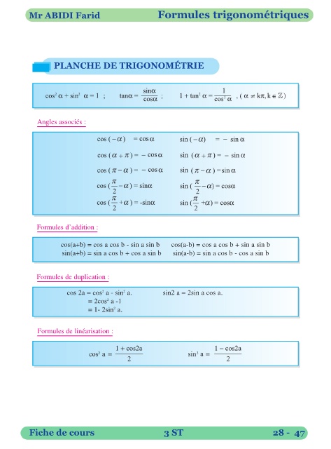 Mr ABIDI Farid                              Formules trigonométriques