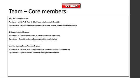 experience of key members to develop both new chemistry and structure of battery, as well as battery pack as