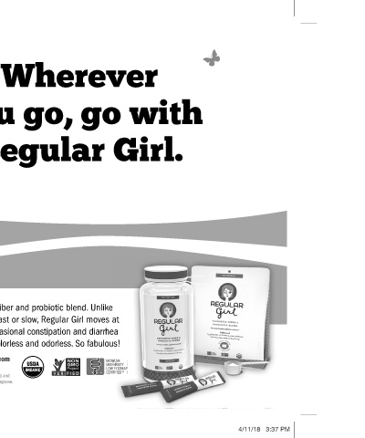 Say hey to Regular Girl ® , an exclusive prebiotic ber and probiotic blend. Unlike