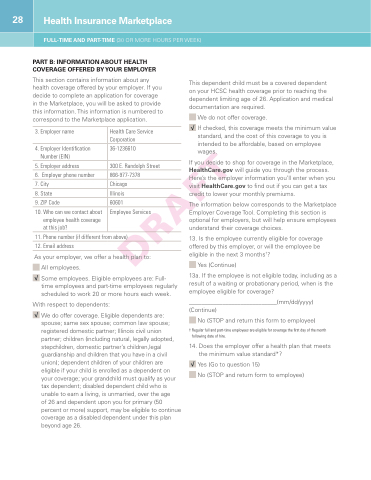 This section contains information about any health coverage offered by your employer If you you decide to complete an application for coverage in the Marketplace