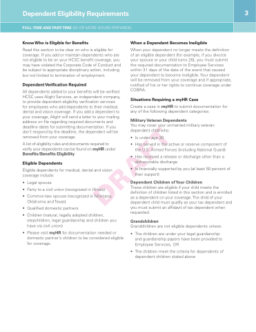 • Please visit myHR for documentation needed or or domestic partner’s children to be considered eligible for coverage When a Dependent Becomes Ineligible