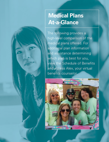 The following provides a high-level comparison of the medical plans offered For additional plan information and assistance determining which plan is best for you view the Schedule of Benefits and access Alex your virtual benefits counselor