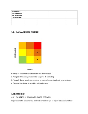 3. Riesgo 3 Que el agente de marketing no ejecute la idea visualizada en el comienzo