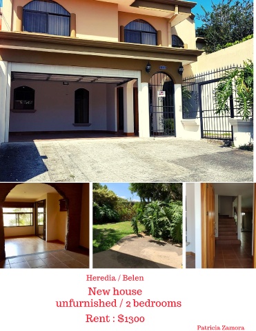 Heredia / Belen New house unfurnished / 2 bedrooms Rent : $1300 Patricia Zamora