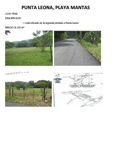 PUNTA LEONA, PLAYA MANTAS COD: TP35 DESCRIPCION: → Lote ubicado en la segunda entrada a Punta Leona PRECIO: $ 100 m²