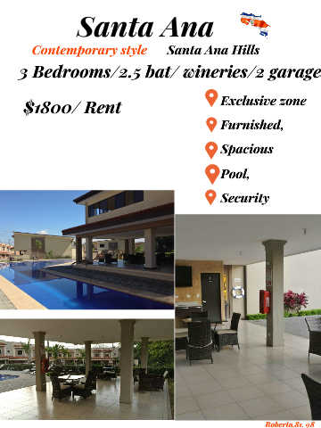 Santa Ana Contemporary style Santa Ana Hills 3 Bedrooms/2.5 bat/ wineries/2 garages $1800/ Rent Exclusive zone Furnished, Spacious Pool, Security Roberto,81. 98