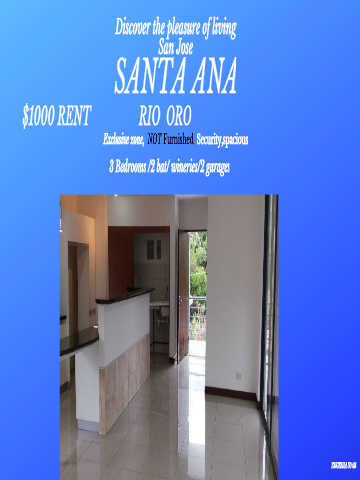 Discover the pleasure of living San Jose SANTA ANA $1000 RENT RIO ORO Exclusive zone, NOT Furnished, Security,spacious 3 Bedrooms /2 bat/ wineries/2 garages EUGENIA 50 68