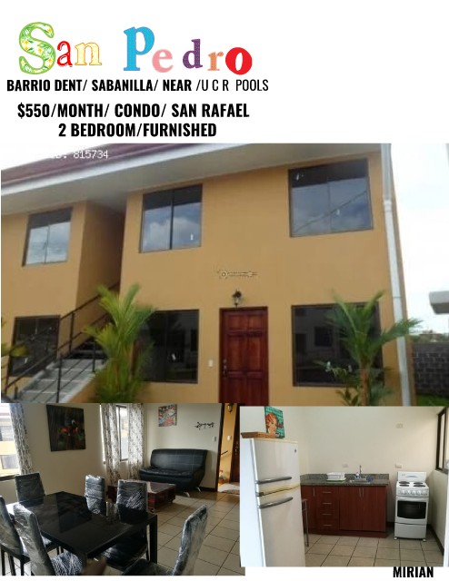 BARRIO DENT/ SABANILLA/ NEAR /U C R POOLS $550/MONTH/ CONDO/ SAN RAFAEL 2 BEDROOM/FURNISHED MIRIAN