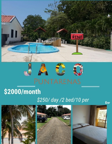 Puntarenas $2000/month $250/ day /2 bed/10 per fer