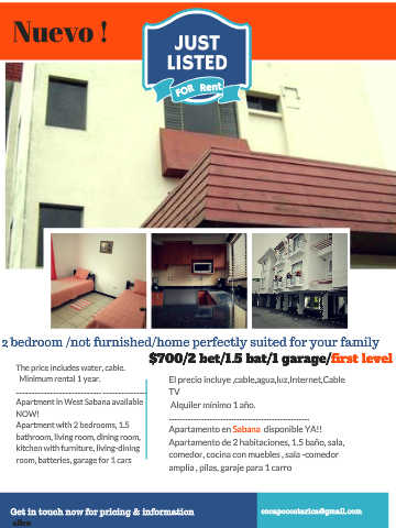Apartment in West Sabana available Alquiler mínimo 1 año.