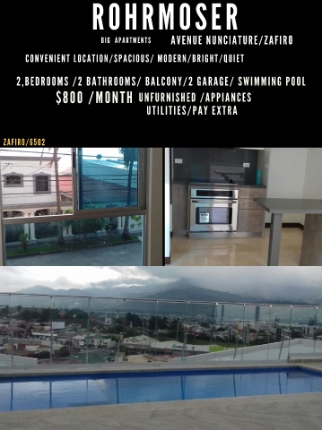 ROHRMOSER AVENUE NUNCIATURE/ZAFIRO BIG APARTMENTS CONVENIENT LOCATION/SPACIOUS/ MODERN/BRIGHT/QUIET 2,BEDROOMS /2 BATHROOMS/ BALCONY/2 GARAGE/ SWIMMING POOL $800 /MONTH UNFURNISHED /APPIANCES UTILITIES/PAY EXTRA ZAFIRO/6502