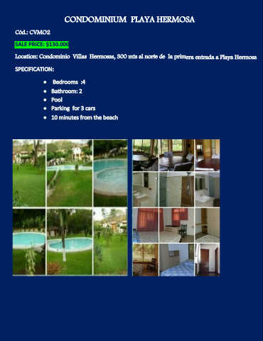 Location: Condominio  Villas  Hermosas, 300 mts al norte de  la primera entrada a Playa Hermosa