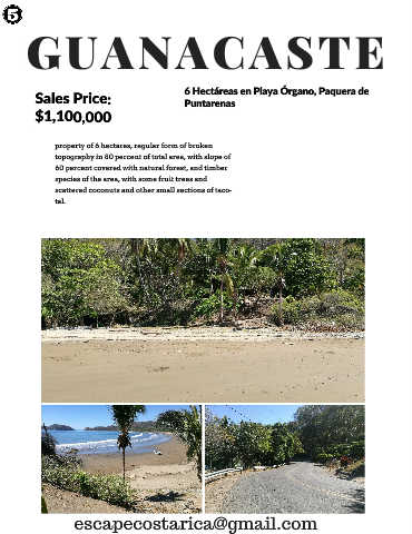 Sales Price: 6 Hectáreas en Playa Órgano, Paquera de