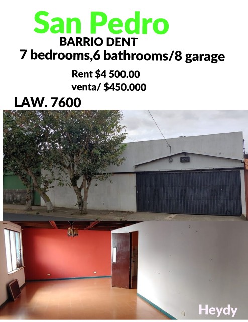 San Pedro BARRIO DENT 7 bedrooms,6 bathrooms/8 garage Rent $4 500.00 venta/ $450.000 LAW. 7600 Heydy