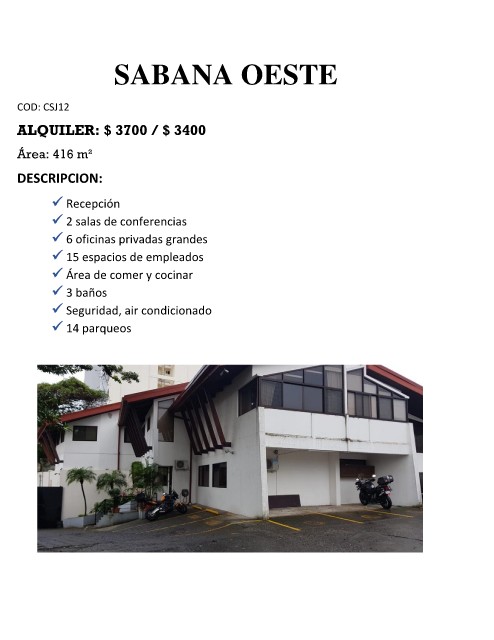 ALQUILER: $ 3700 / $ 3400
