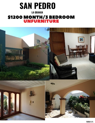 SAN PEDRO LA GRANJA $1200 MONTH/3 BEDROOM UNFURNITURE MIRIAN
