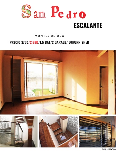 ESCALANTE M O N T E S D E O C A PRECIO $750/2 BED/1.5 BAT/2 GARAGE/ UNFURNISHED roy leandro