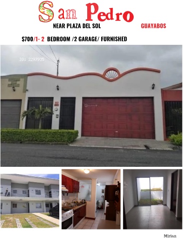 NEAR PLAZA DEL SOL GUAYABOS $700/1- 2 BEDROOM /2 GARAGE/ FURNISHED Mirian