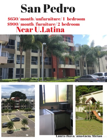 San Pedro $650/ month /unfurniture/ 1 bedroom $900/ month /furniture/ 2 bedroom Near U.Latina ricardo torr Laura chava/ anastacia/Mirian