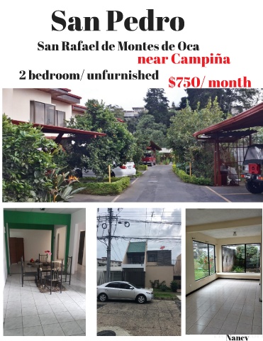 San Pedro San Rafael de Montes de Oca near Campiña 2 bedroom/ unfurnished $750/ month ricardo torr Nancy