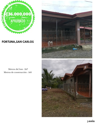 ₡36.000.000 APROBADO FORTUNA,SAN CARLOS Metros del lote : 247 Metros de construcción : 140 yania
