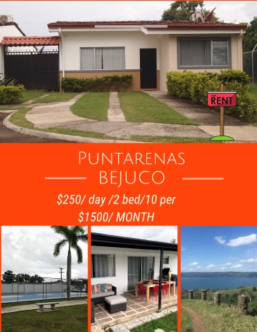 Puntarenas BEJUCO $250/ day /2 bed/10 per $1500/ MONTH